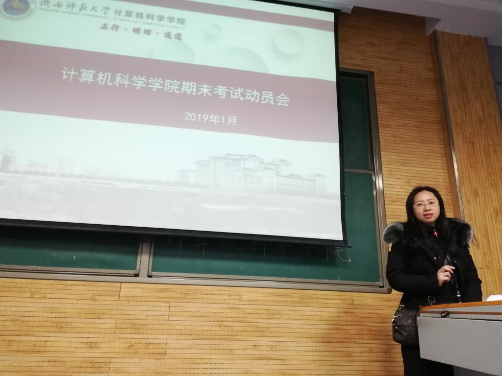 为严肃考风考纪,让同学们做到诚信考试,1月6日17:30,万象城官网在教学五楼5201教室召开2018级学生期末考前动员大会。本次动员会由2018级辅导员安琪主持,学院党委副书记袁冰、学院教学副院长马苗参加了本次会议。