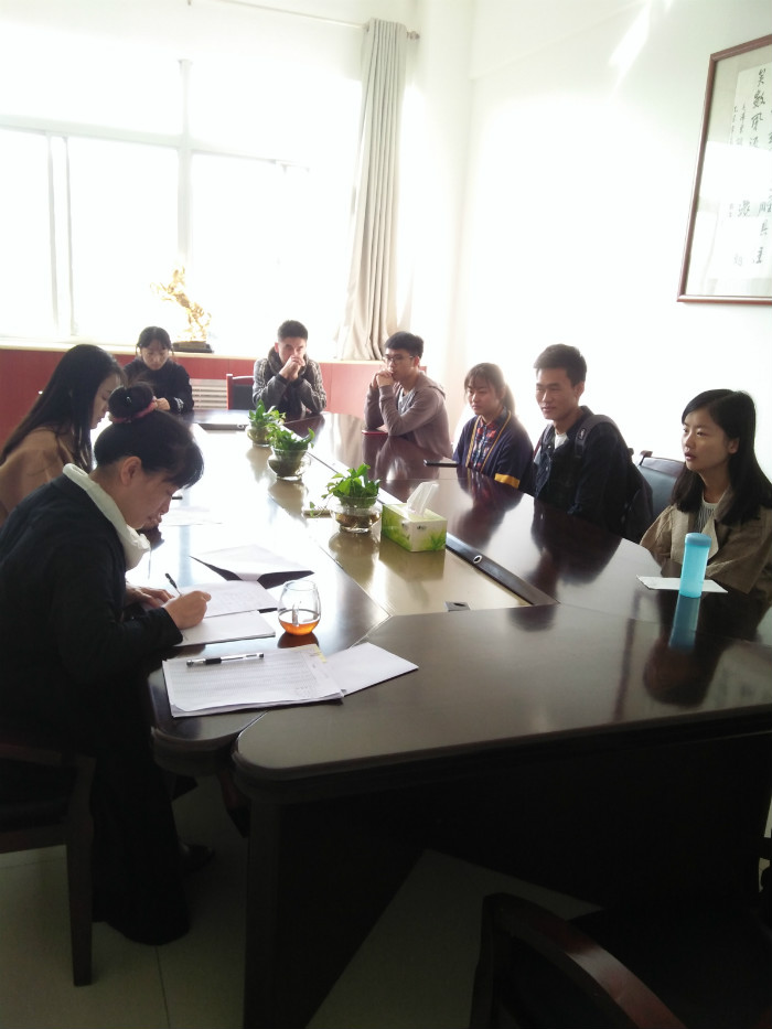 2018年10月24日上午,万象城官网在文津楼3402会议室召开2019届非师范本科毕业生就业推进会。学院党委副书记袁冰、2019届本科生辅导员吉晨晓和2019届部分非师范本科生参加了此次会议。会议按班级进行,主要针对2019届本科未就业的毕业生,在了解学生的就业意向以及相关的就业困难等现象,提出了相应的建议及意见。
