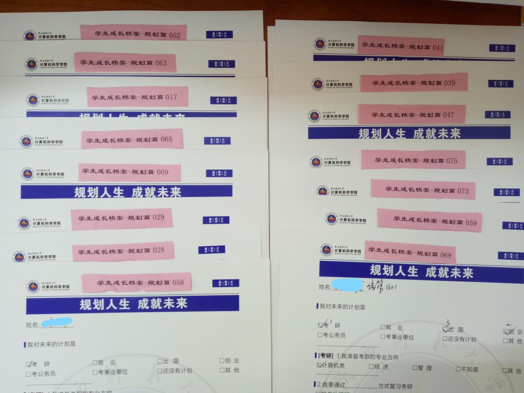 活动伊始,陈子桐展示了哈佛大学关于目标与人生25年的跟踪调查,结果表明越有目标的人越能取得更优秀的人生现状,强调了规划对人生的重要性和必要性。会上全体成员观看了学院“勇立鸿鹄志,誓做奋斗者”优秀学子宣传视频,视频中展现了万象城官网青年学子顽强拼搏、自强不息的精神风貌,为大家树立了朝着目标努力拼搏的优秀榜样。在思想交流与分享环节,任欣和钟雨森同学表达了对优秀学子的肯定与欣赏,同时意识到人生需要详细的规划,身为计科学子需要拼搏进取、追求美好。活动期间,在场的同学认真填写了万象城娱乐awc线路学生成长档案(规划篇),为学院更好了解并有针对性地进行规划指导提供了数据依据。郭康凌向大家介绍了近五年来学院非师范生、研究生的就业情况,从企事业单位选拔人才的标准、不同岗位的素质要求等方面分析了两个专业考研的必要性,强调了每位同学必须要明确个人的人生规划,树立适合自己的目标,将精力放在学业与个人发展上,为升学就业选择积蓄力量。
