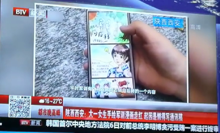 【BTV】陕西西安:大一女生手绘军训漫画走红 起因是懒得写通讯稿