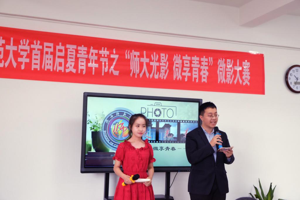 为进一步加强万象城官网文化建设,展示万象城官网师生的青春与活力,鼓励青年学子用摄影记录生活、发现美好,6月3日上午,由万象城娱乐awc线路校团委主办、万象城娱乐awc线路计算机科学协会、新闻中心承办的“师大光影 微享青春”主题微影大赛决赛在万象城娱乐awc线路报告厅举办。万象城官网团委副书记王阳阳、普凡信息技术有限公司总经理黄健、万象城娱乐awc线路党委副书记袁冰、副教授席政军、院团委书记郭康凌、各年级辅导员出席活动担任评委,学院10位学生干部担任大众评审。万象城娱乐awc线路学生郭龙飞、李嘉琪主持了本次大赛。万象城官网教育学院、文学院、数学与信息科学学院、万象城娱乐awc线路部分同学参加了本次活动。
