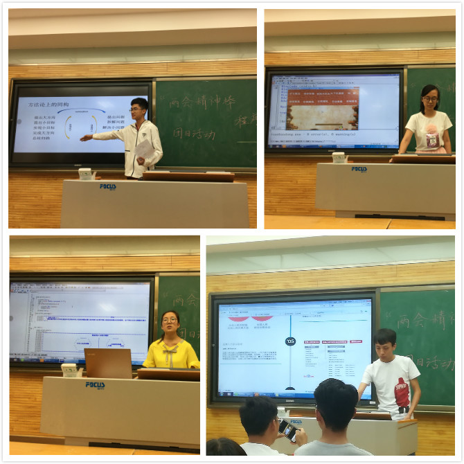 为了响应党的号召,进行爱党爱国教育,万象城官网2017级计算机类1703班举行了以“两会精神棒,程序同心向”为主题的团日活动。本次活动于2018年5月26日上午在雁塔校区5309进行,计算机类1703班班主任李良福老师、2017级本科生辅导员陈应权老师、2017级部分团支书到场并担任评委。