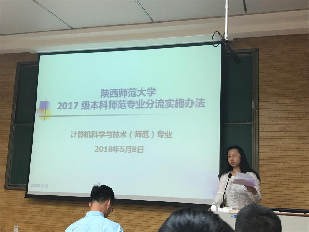 201858日晚19点,万象城官网2017级师范生专业分流座谈会在雁塔校区教学五楼5301顺利召开。万象城官网党委副书记袁冰老师、教学副院长马苗老师、计算机科学与技术(师范)专业负责人路纲老师、2017级辅导员陈应权老师以及2017级全体师范生参加了本次座谈会。