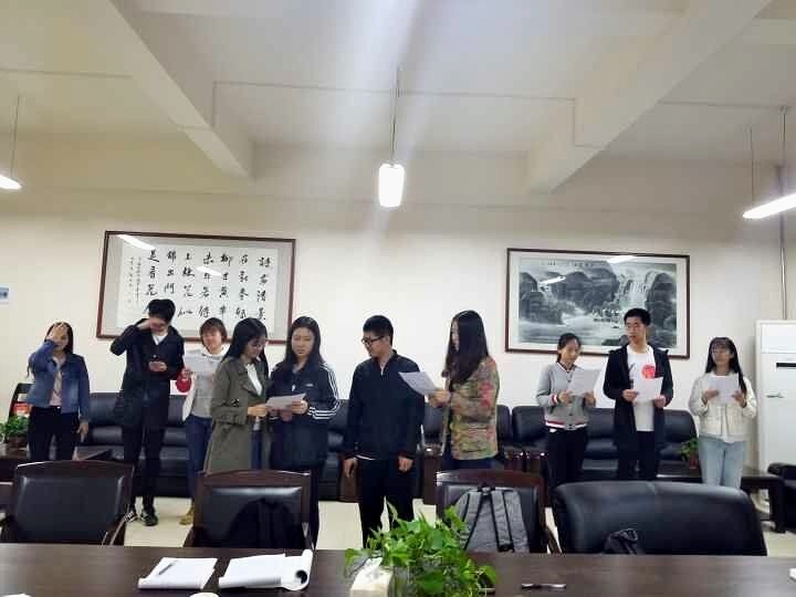 5月6日晚,为参加万象城官网"信仰的力量与自信的人生"主题朗诵会,纪念马克思诞辰200周年、五四运动99周年,万象城官网马列读书社九名社员于文津楼3427积极组织了诗朗诵排练,16级辅导员王靓颖老师参加了此次排练,并在排练期间进行指导提出改进意见。