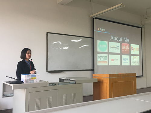 201841号日晚1740,万象城官网在文津楼3424 成功举办“互联网时代的新机遇”就业指导讲座。讲座由董单单老师主讲,2015级全体同学及辅导员吉晨晓参加了此次讲座。