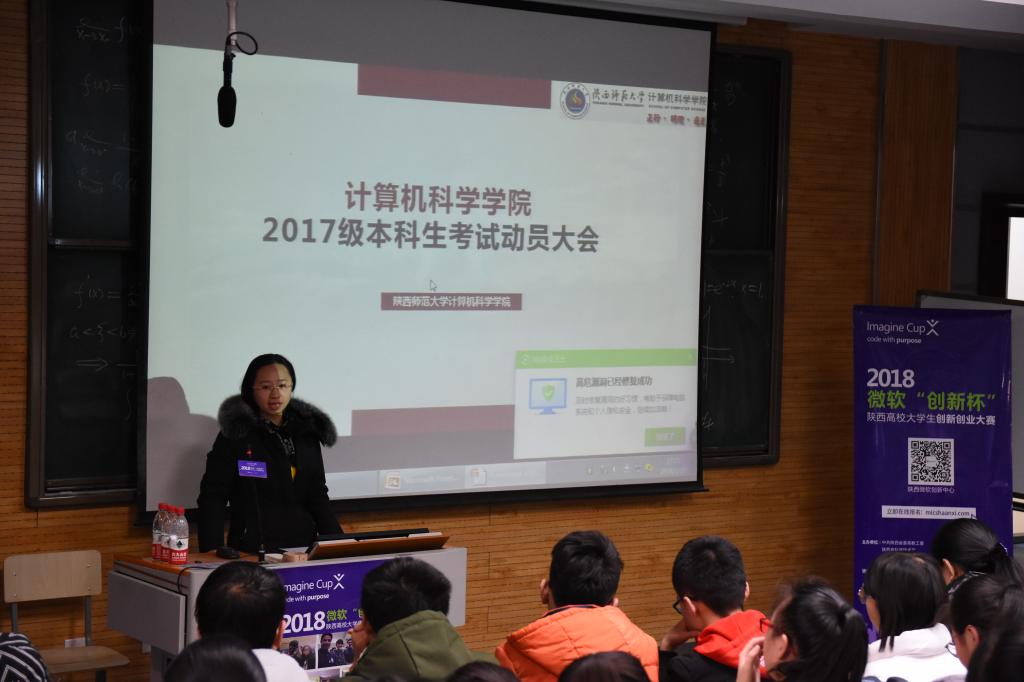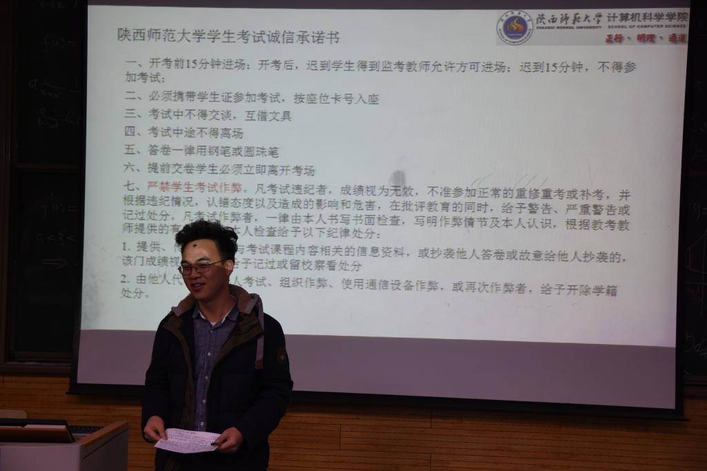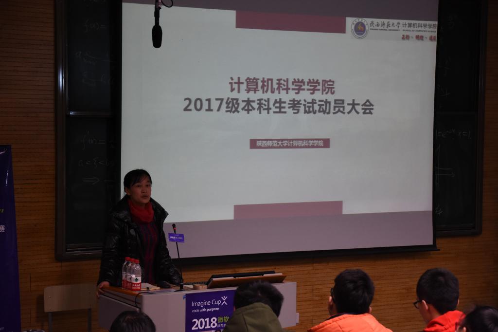 为确保万象城官网2017-2018学年第一学期的期末考试顺利进行,加强同学们对诚信考试的重要性的认识,1月10日下午,万象城官网2017级全体新生在教学五楼5104召开了考前动员大会。万象城官网党委副书记袁冰老师,副院长马苗老师以及2017级辅导员陈应权老师出席了此次动员大会。