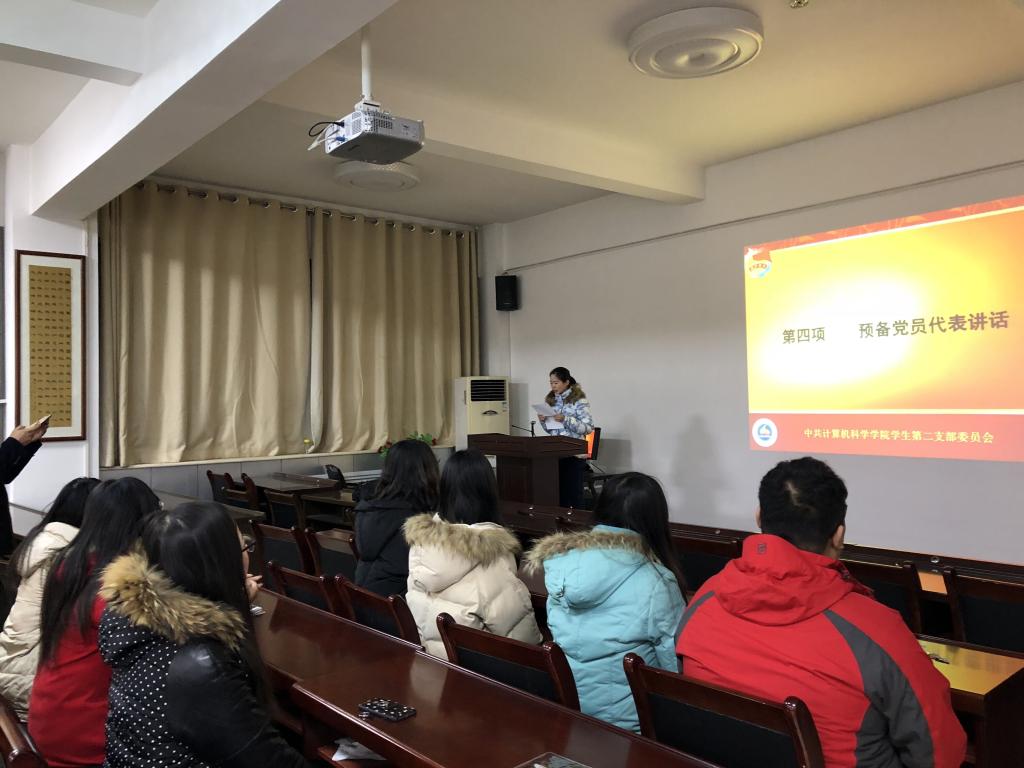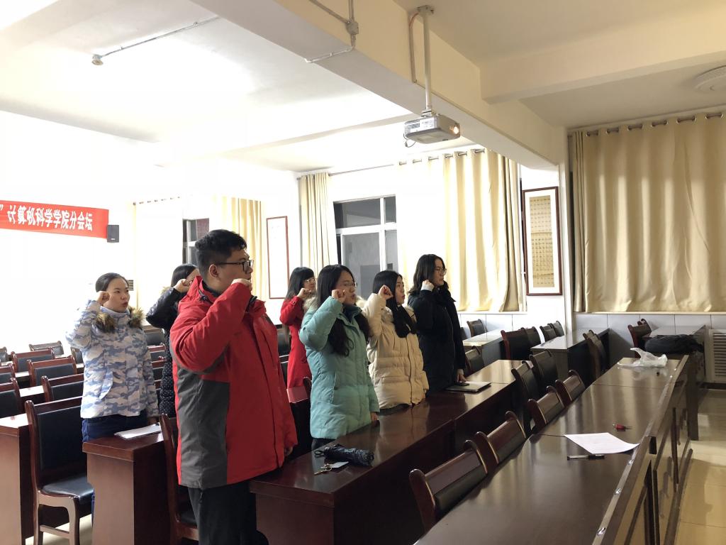 13日晚,学院学生第二党支部在学院报告厅举行预备党员入党宣誓仪式。仪式由支部书记安琪主持,支部委员蒋欢以及八位预备党员参加了宣誓仪式。