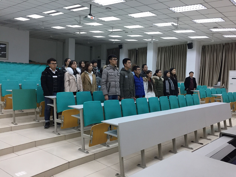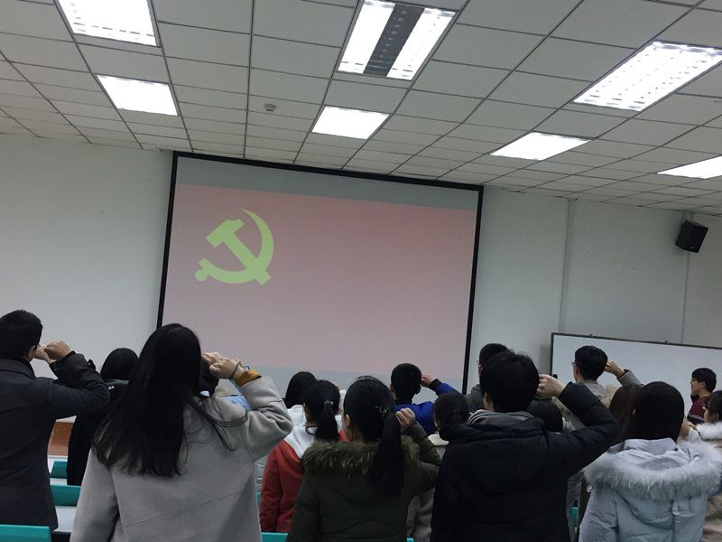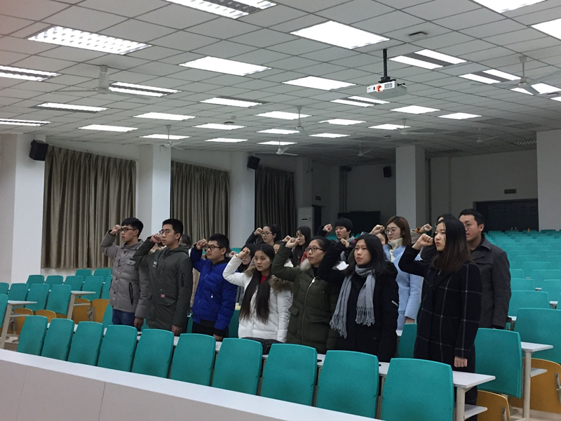 201811日晚八点,万象城官网学生第一党支部召开预备党员宣誓仪式,支部书记赵志博同志,副书记陈明哲同志,组织委员闫丹丹同志及二十位预备党员参加了会议。宣誓仪式由赵志博同志主持。
