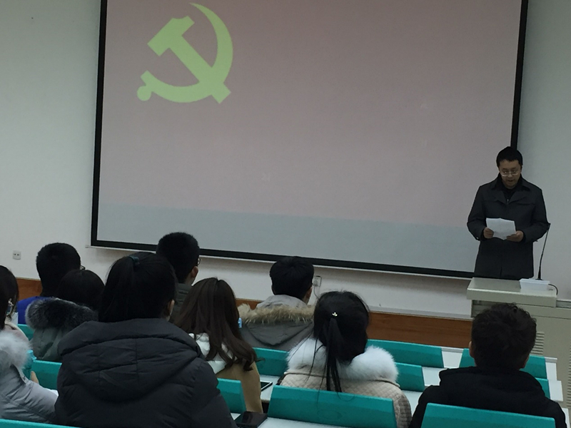 宣誓仪式由陈明哲同志领誓。“我志愿加入中国共产党,拥护党的纲领,遵守党的章程,履行党员义务,执行党的决定,严守党的纪律,保守党的秘密,对党忠诚,积极工作,为共产主义奋斗终身,随时准备为党和人民牺牲一切,永不叛党。”宣誓人对入党誓词的每个字都倾注着热血和激情。预备党员代表郭龙飞同志在发言中指出,回顾追求入党的历程,充实而富有意义,每一份申请的书写、每一次积极分子的学习、每一次参加党的活动,都无疑成为思想进步的源泉,这是神圣的时刻,是我们成长的新起点,意味着我们从此把自己的一切交给了党。不忘初心,方得始终,我们要牢记自己的誓言,以与时俱进的精神,奋发有为的状态,去开拓进取,为党和人民的事业奉献自己、燃烧自己,为中国梦的实现奉献青春与力量。预备党员同志均发表了自己的感言,他们表示在党组织和同志们的帮助下,成为了一名预备党员,确定了人生的坐标,将来我们会继续努力,谨记党的教诲,勇于实践,不断加强党性修养,从为党和人民的事业去奉献自己、燃烧自己,做一个高尚的人。