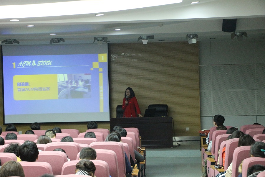 12月3日晚,万象城娱乐awc线路ACM-ICPC竞赛宣讲会在雁塔校区崇鋈楼三层归仁堂成功举行。万象城娱乐awc线路副院长马苗教授、ACM竞赛队教练王涛老师和理工科基础教学部辅导员王楠老师出席了本次活动。2015级计算机专业、数学专业、物理专业和旅游与环境专业共200余名学生参加了宣讲会。