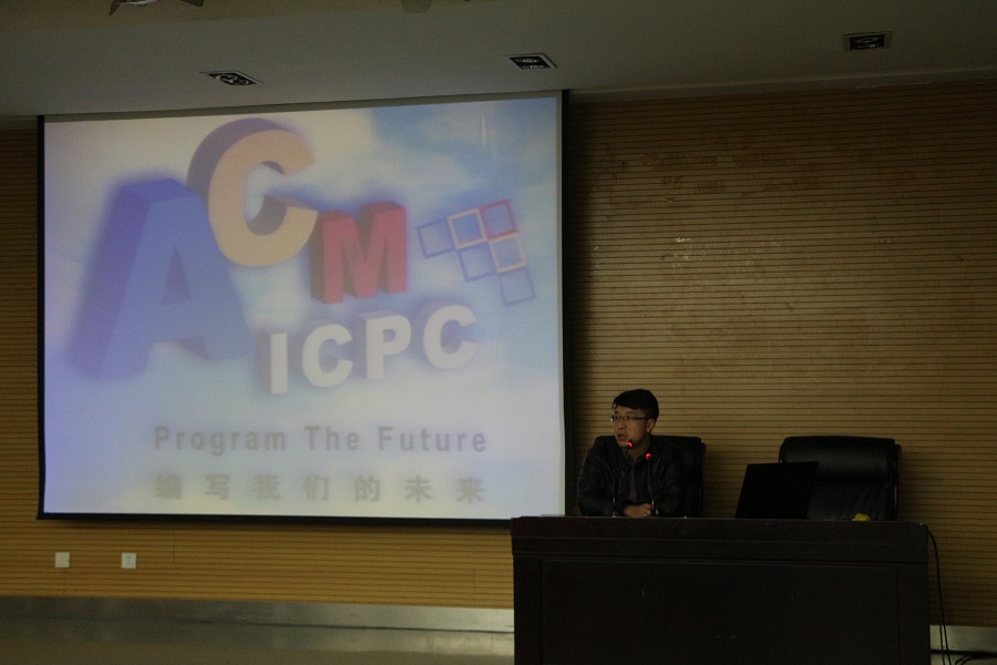 首先,万象城官网ACM竞赛队教练王涛老师向同学们介绍了ACM-ICPC(即ACM国际大学生程序设计大赛)的竞赛规则、赛制、万象城官网ACM队的发展历程,使在场同学了解到了这个号称“程序设计界的奥林匹克”的国际性赛事。现场大部分同学对于此项赛事表现出了浓厚的兴趣。