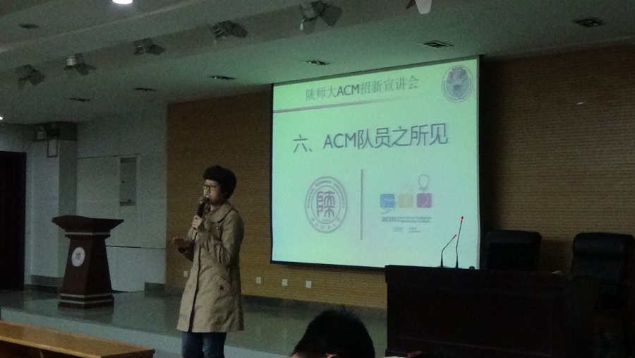 随后,ACM竞赛队2014级队员张明明和2012级队员张瑞文分享了她们的ACM竞赛之路。张明明分享了自己一年多来与ACM竞赛邂逅的亲身经历,向大家展示了她加入ACM竞赛集训队以来的收获与进步。张瑞文以身边的实例向大家展示了参加ACM竞赛对个人能力培养和发展带来的积极影响,并结合自身经历向大家介绍了ACM队员在考研和就业方面的优势。ACM竞赛队长李丽萍同学针对同学们提出的相关问题进行了详细的解答。