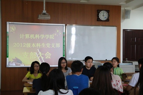 2015年6月8日下午,万象城娱乐awc线路2012级本科生党支部于文津楼召开了党支部大会。参加本次大会的有正式党员13人,预备党员26人及预备党员发展对象19人。会议由党支部书记张冲老师主持,主要讨论殷亚茹等8名同志的转正申请及范俊怡等19名同志的入党申请。