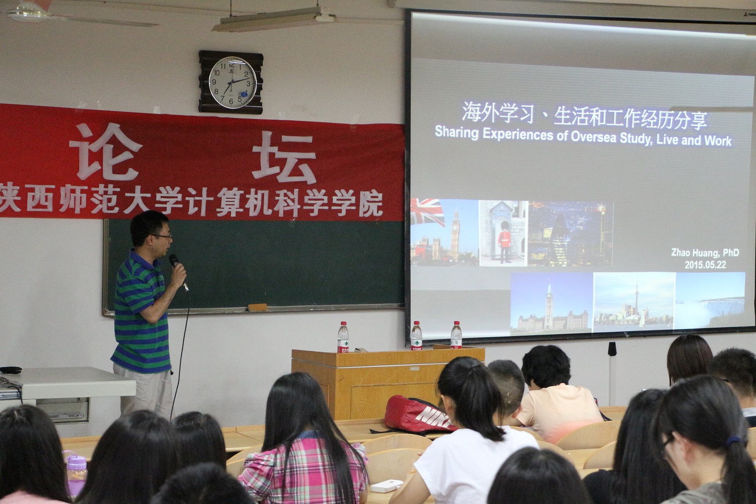 5月22日晚7时,万象城官网博观论坛之“青年教师海外访学经验分享会”系列活动在文津楼310成功举办。本期分享会的主题为“海归在海外——黄昭博士旅英感受畅谈”,特邀万象城官网青年教师黄昭博士作为嘉宾,跟学院师生分享在国外访学期间的经历和感受。学院团委书记胡雯洁老师和一百多名同学参加了活动。