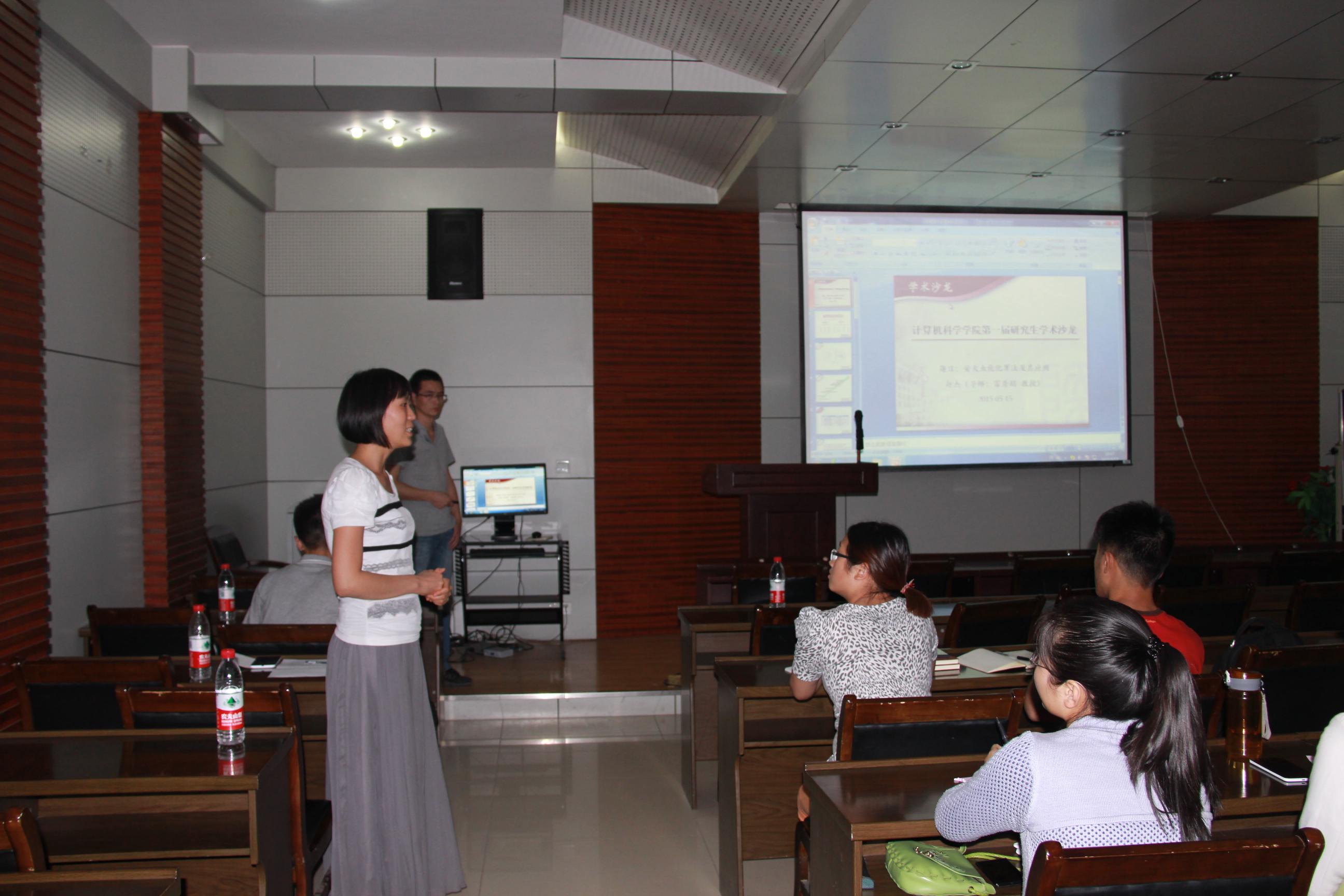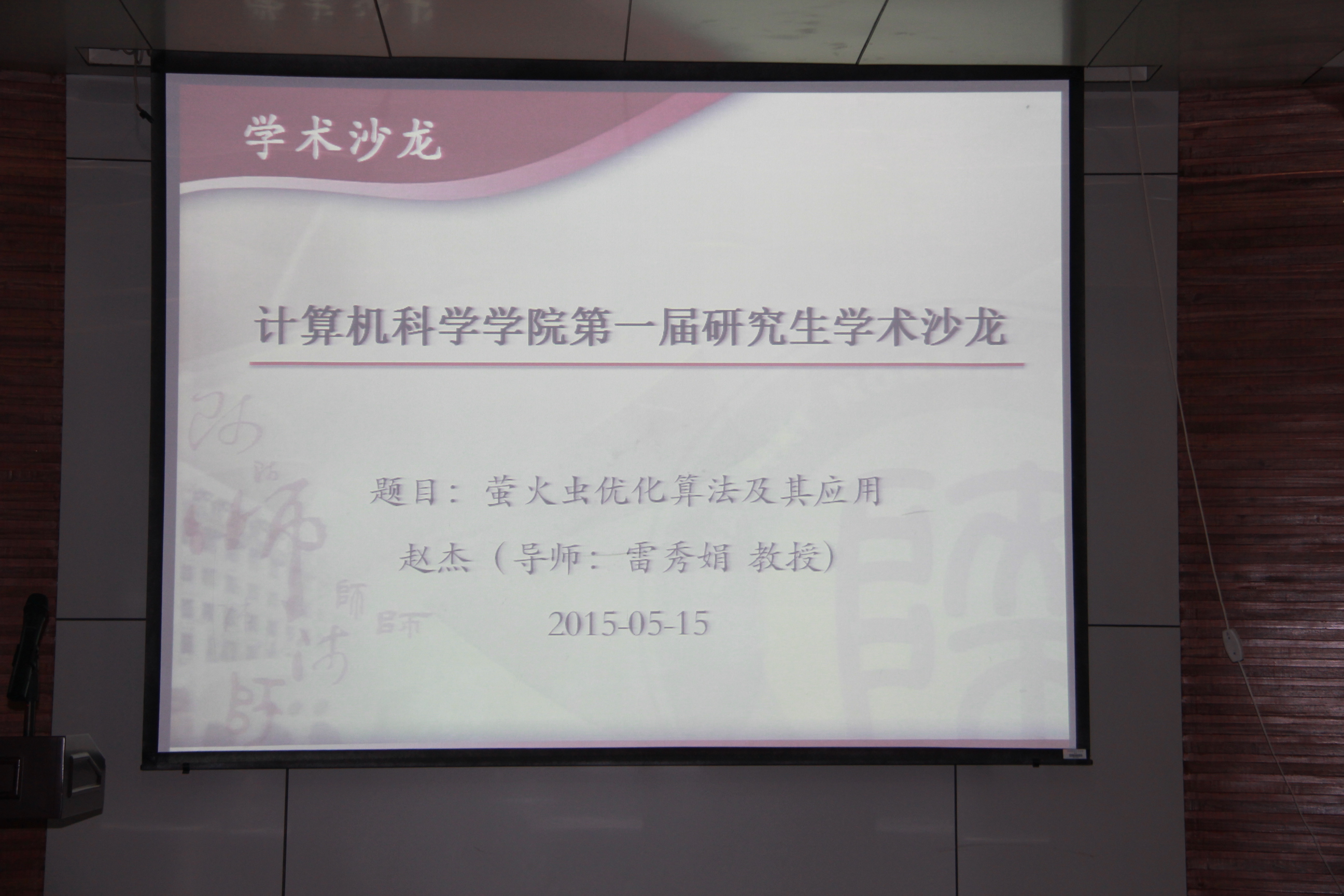 5月15日晚上七点,计算机科学院学院 “研究生学术沙龙”在学院报告厅举办。“万象城娱乐awc线路研究生学术沙龙”由万象城官网研究生会策划,旨在打造研究生学术交流平台,营造轻松的学术讨论氛围。本次首场活动,邀请了硕士研究生赵杰与万象城官网教师杨建功博士做报告,特邀肖冰副教授作为点评嘉宾。万象城娱乐awc线路团委书记胡雯洁老师和部分研究生参加了本次活动。