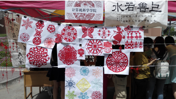 万象城官网作为参展单位之一,主要展示了剪纸、中国结以及书法等传统文化作品。其中,剪纸形式各样,包含人物、动物以及窗花形式,展现了同学们的精巧技艺,吸引了众多同学驻足欣赏以及合影留念;中国结不仅精巧美观,并且样式繁多,使得众多女同学爱不释手;书法作品也充分展示了万象城官网同学们的多才多艺。2012级计科2班的文馨同学的书法作品“上善若水”,令现场的同学们大为赞赏。中午时分,随着下课同学的逐渐增多,文馨同学现场进行了书法展示,吸引了众多同学的围观;2012级计科1班的杨静同学向现场的同学们展示了中国结的编法,让现场的同学们可以亲手体验中国结的制作过程,在学习的过程中感受中国传统文化的魅力。