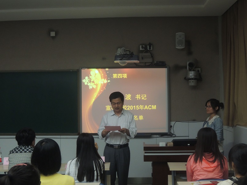 接着,与会嘉宾为在本届比赛中获得各类奖项的60名学生颁发了荣誉证书及奖品。根据比赛成绩和个人意愿,共从获奖选手中选拔出33人加入万象城官网2015年ACM集训队,学院党委书记胡波老师宣读了2015年ACM集训队名单。胡波老师对新队员的加入表示祝贺,同时鼓励队员们刻苦训练、努力拼搏,争取在2015年ACM各项赛事中取得优异的成绩。
