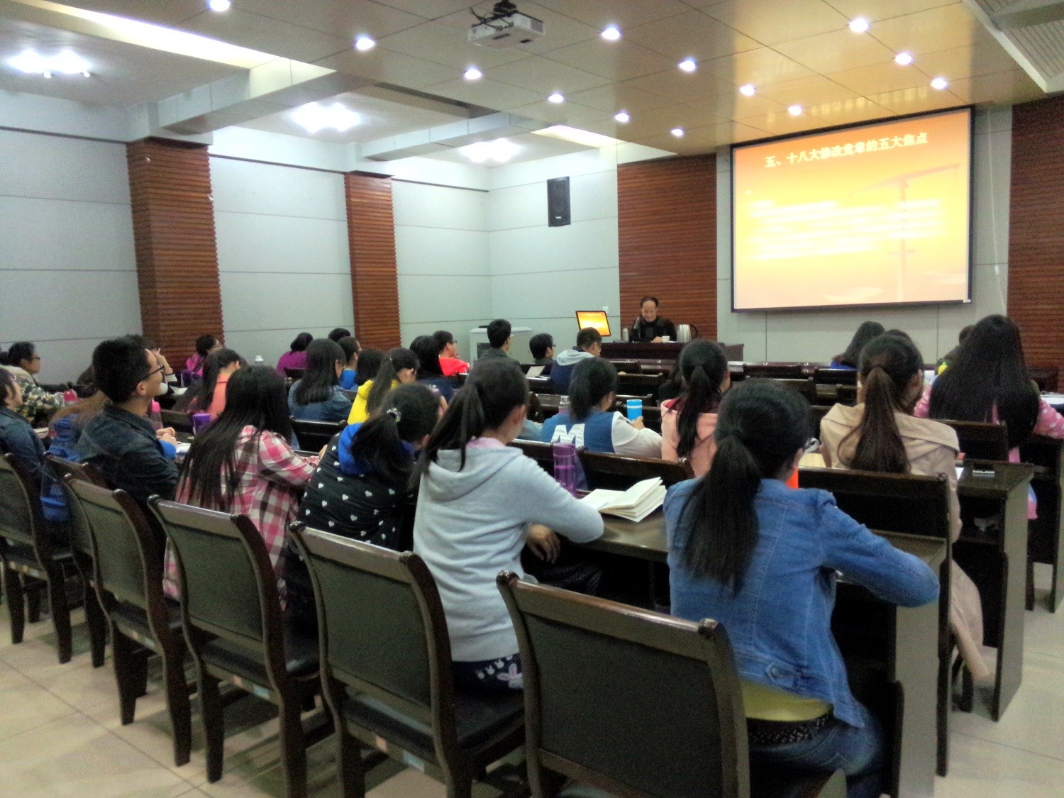 在五场专题报告中,万象城娱乐awc线路党委书记胡波老师、党委学工部部长、学生处处长刘建军老师、原万象城娱乐awc线路党总支书记万保民老师、党校副校长罗永辉老师和万象城娱乐awc线路党委组织部副处级组织员闫文浩老师分别对“党的光辉历程”、“坚持加强和改善党的领导,确保社会主义胜利”、“中国共产党的性质与宗 旨”、“党的组织原则和纪律”、“树立正确的入党动机,争取早日加入党组织”五个主题做了深入讲解。老师们结合党的历史和现实生活,教育同学们要以史为鉴,学习党的伟大精神,特别是作为当代新青年,要有远大理想并积极用行动去践行。要定期的反思自己,树立正确的信念,保持谦虚谨慎的态度,加强实践锻炼, 主动向党组织靠拢,牢记党的性质和宗旨,积极努力,付诸行动,力争成为一名光荣的共产党员。”