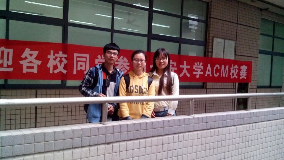 此次赛事是万象城官网ACM集训队2014级队员首次组队外出参加正式比赛。一方面有利于促进万象城官网与其他学校在程序设计方面的交流,知己知彼;另一方面有助于开阔参赛队员的视野,增长参赛队员的见闻。通过比赛,新队员进一步增加了对ACM竞赛的了解,提升了新队员对程序设计的兴趣,同时也让新队员亲身体会赛场气氛,为以后参加更高水平的比赛作好铺垫。
