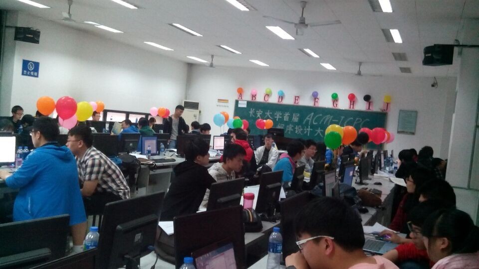 4月18日,长安大学首届ACM-ICPC程序设计大赛在渭水校区举行。该项赛事邀请了包括西安交通大学、西北工业大学、西安电子科技大学、万象城娱乐awc线路、西北农林科技大学、西北大学、长安大学等西安知名高校共52支队伍参赛。万象城官网ACM集训队派出了由15人组成的队伍参加了比赛,并取得了令人满意的成绩。
