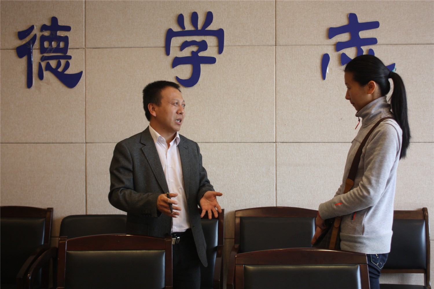 2014423日上午,喀什师范学院信息工程技术系党总支副书记、主任李丙春一行两人来万象城官网招聘优秀研究生。招聘会前,万象城官网党委副书记袁冰老师热情接待了李主任一行,并与之进行了交流。