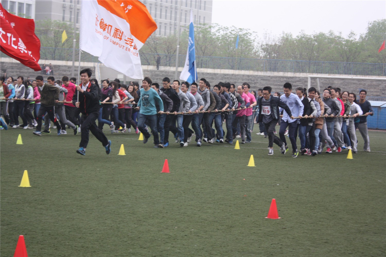 连续三日,运动会顺利进行。参赛选手们分别在短跑、跳高、拔河、接力赛等多个项目上展开角逐。竞赛分为甲组和乙组。赛场上,运动健儿们激情飞扬、奋力拼搏,主持人追踪报道比赛进程,宣读各院部撰写的宣传稿。4月18日下午4点左右,最后一个比赛项目队旗接力举行完毕,这也标志着本次运动会顺利结束。