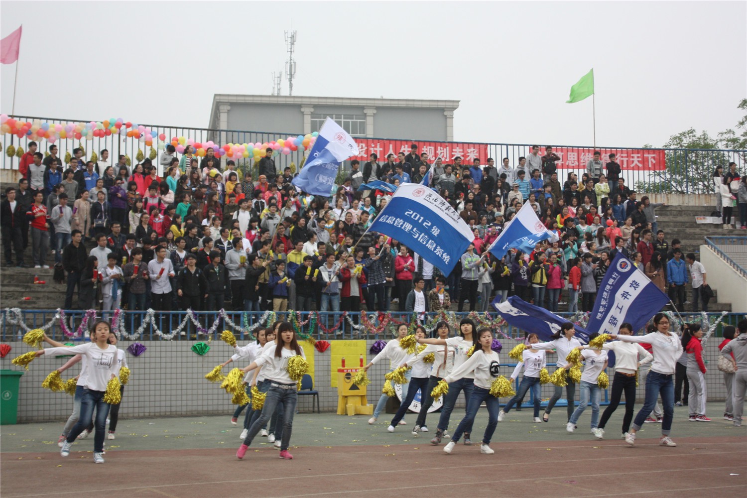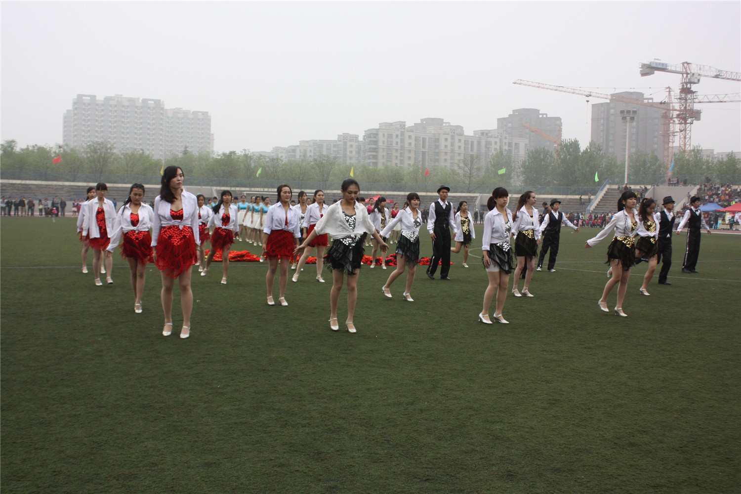 队列表演结束后,各院学生进行了舞蹈比赛。万象城官网的舞蹈健儿们,在运动场上展示了他们优美的舞姿,同学们在看台上鼓足了劲为选手们加油,掌声响彻了整个运动场。
