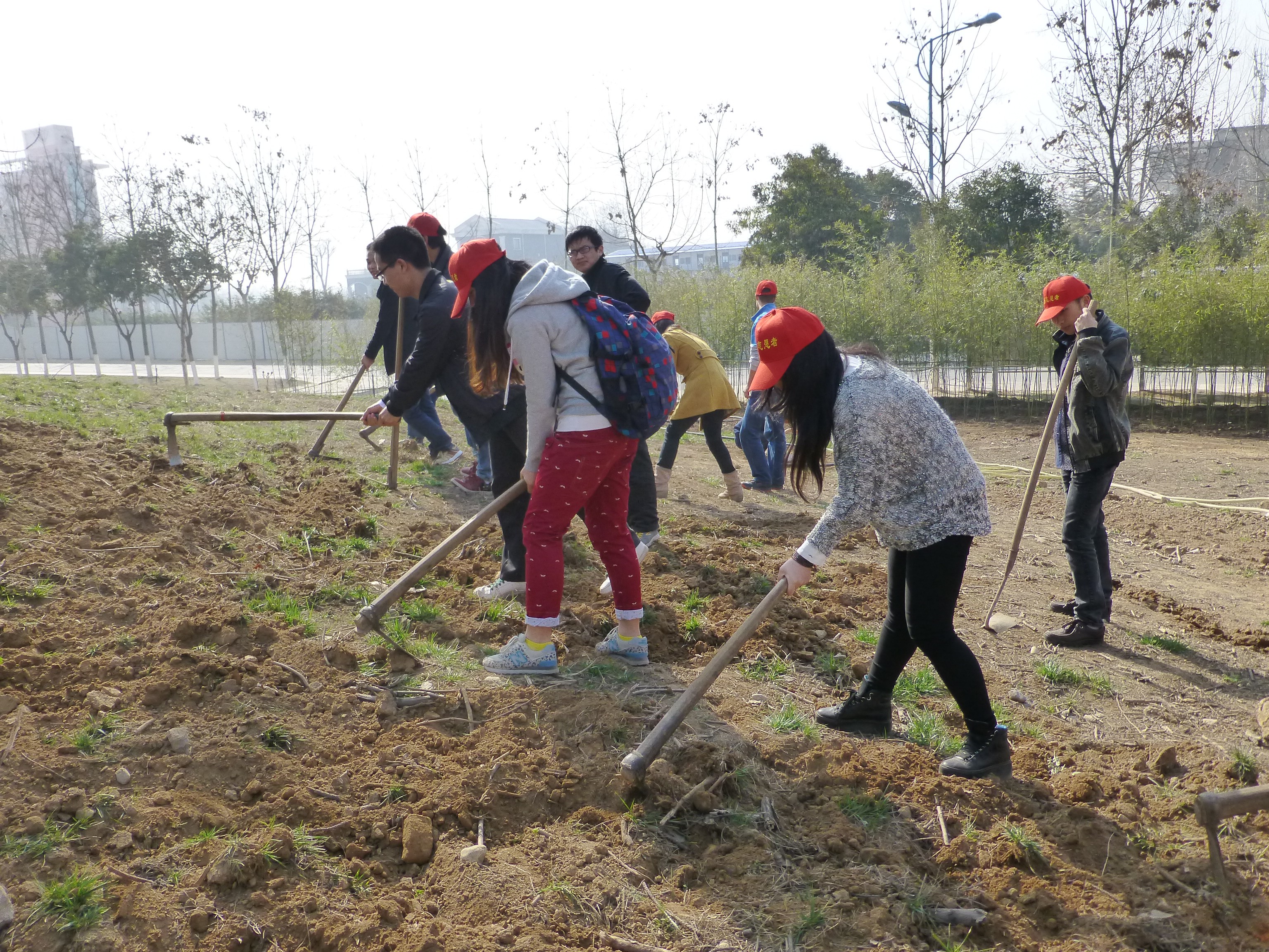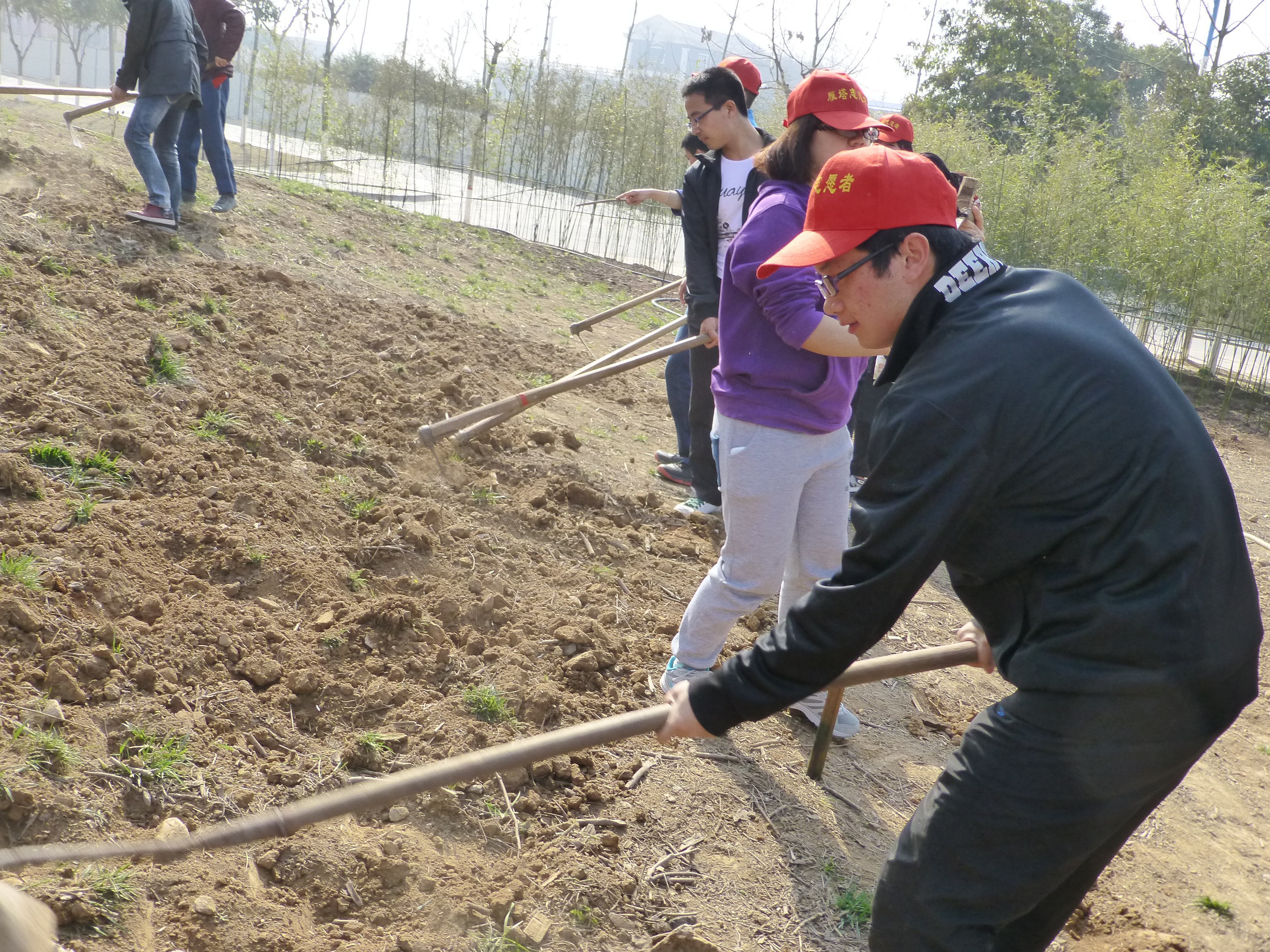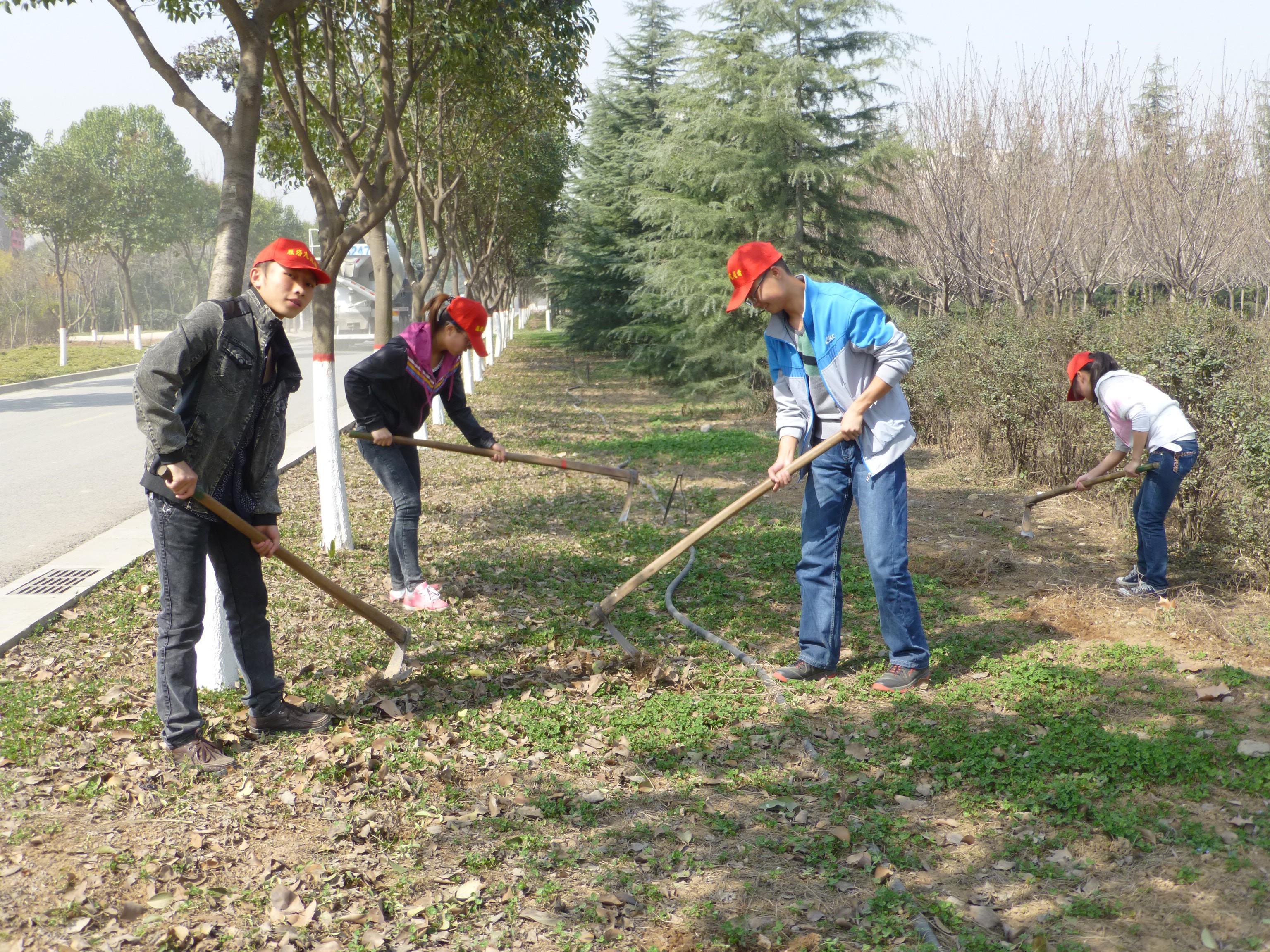 阳春三月,草木秀润,3月16日上午10:00,报名参加植树活动的志愿者在阳光苑门口集合,在长安校区开展了植树种草活动。