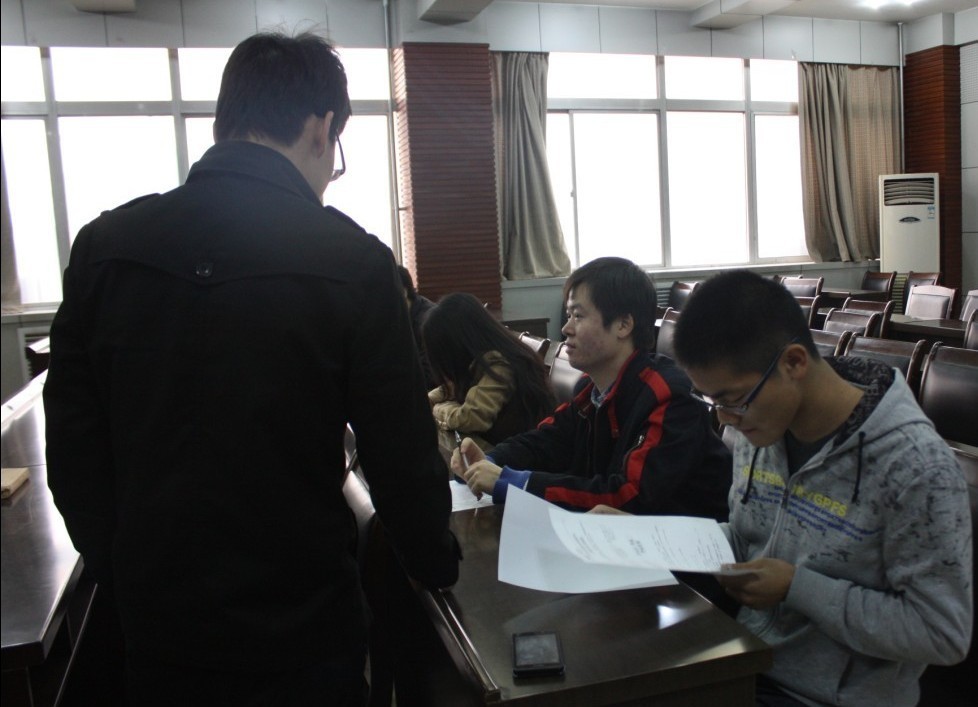 宣讲会结束后报名同学按照秩序参加了公司笔试,同学们认真答题,气氛严肃。招聘会现场秩序井然。