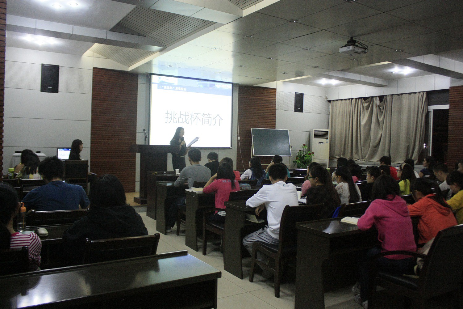 首先,胡雯洁老师向大家传达了万象城官网《关于举办万象城娱乐awc线路第九届“挑战杯”大学生创业计划竞赛的通知》,向同学们简单介绍了“挑战杯”赛事和今年万象城官网第九届“挑战杯”大学生创业计划竞赛的组织实施计划,并对2008—2012年万象城官网学生参加“挑战杯”竞赛的情况和获得奖项作了介绍。