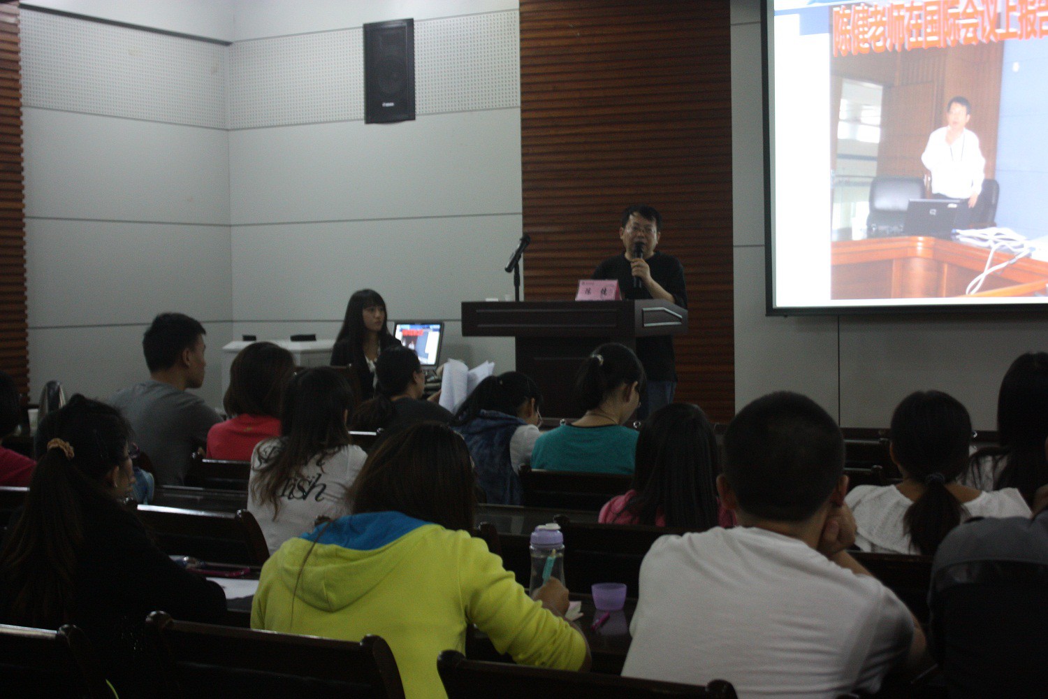 为进一步激发万象城官网学生的创业热情,提高学生创新实践能力,推动创业实践教育,同时选拔优秀作品参加万象城娱乐awc线路第九届“挑战杯”大学生创业计划竞赛及陕西省和全国“挑战杯”竞赛,万象城官网于10月10日晚,在文津楼四层学院报告厅举行“挑战杯”经验交流会暨动员大会。万象城娱乐awc线路电子服务与软件工程中心主任、“挑战杯”指导教师陈健副教授、万象城官网团委书记胡雯洁老师、获奖学生杨婷婷、郎欢应邀出席了此次活动,活动也吸引了万象城官网2011级和2012级本科生前来参加。