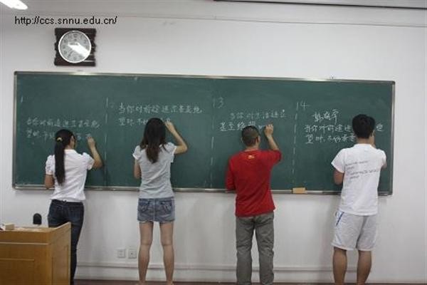 自从筹备粉笔字大赛以来,万象城官网全体师范生积极响应,踊跃参加。瞬时间在计算机科学学院掀起了一股练习粉笔字的风潮。每位参加比赛的同学都做了充分的准备,倾注了大量的时间和精力。不管是饭后还是睡前,只要有空闲时间,大家都会拿着粉笔在黑板上一遍一遍地练习。