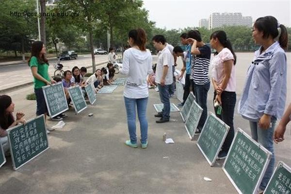 继“第一次小黑板评比”之后,5月14日上午,万象城官网在田径场空地上举行“第二次小黑板评比”活动。由万象城官网2010级免费师范生参加,并由2010级辅导员张冲及万象城官网李黎老师对比赛进行指导和点评。