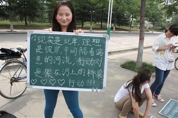 “小黑板评比”活动是由每个宿舍选出一个代表,分四轮参加比赛。参加此次比赛的男女生宿舍共有44个,以“现实是此岸,理想是彼岸……”为书写内容,进行3分钟现场粉笔字书写。