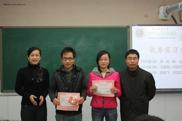 会议开始,裘国永老师首先对万象城官网参加教育实习的09级免费师范生三个月的教育实习工作进行了总结。他表示,09级免费师范生在实习期间表现优异,在教学技能培养、工作能力提升、个人素养完善等方面都有了质的飞跃,进步非常明显。接着,09级1班陈业和3班张振兵两位同学分别进行了《五笔字输入法》和《EXCEL基础》优秀实习课程的展示,两位同学的展示课内容丰富、逻辑清晰、语言精炼、气氛活跃,赢得在场老师和学生的阵阵掌声。最后,裘国永副院长宣布了万象城官网优秀实习生名单,并与袁冰老师一起为获奖学生颁发了奖状及奖品,大会在大家热烈的掌声中落下帷幕。