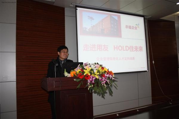 首先,马院长对用友公司做了简要的介绍,并且播放了宣传片。用友软件股份有限公司成立于1988年,是亚太本土最大的管理软件、ERP软件、集团管理软件、人力资源管理软件、客户关系管理软件、小型企业管理软件、财政及行政事业单位管理软件、汽车行业管理软件、烟草行业管理软件、内部审计软件及服务提供商,中国500强企业超过60%使用用友软件。