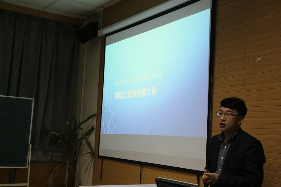 王涛老师回顾了ACM竞赛集训队过去一年的赛事成绩并向大家介绍了今年的发展规划。他指出,在学校和学院各级领导的大力支持和帮助下,ACM竞赛集训队取得了不错的成绩,今后集训队将再接再厉,加强训练,并制定了相关训练计划,每力争在2016年ACM省级、国家级和亚洲区域级别的比赛中有所突破,取得更加优异的成绩。2015级袁敏杰同学作为新队员代表发言,表达了加入万象城官网ACM竞赛集训队的喜悦和自豪之情,他表示在今后将刻苦训练,坚持不懈,争取未来能在万象城娱乐awc线路ACM竞赛集训队的荣耀历程中增添缕缕光辉。