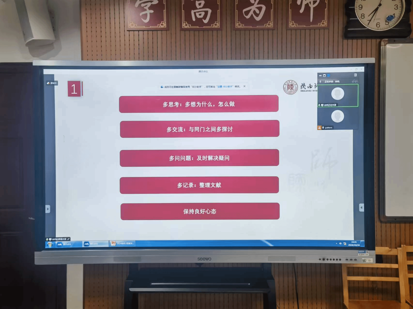 徐然以自身论文写作和科研经历为例,向与会者传授了丰富的经验。她强调,在阅读文献时,不仅要理解其内容,更要深入思考作者的研究动机和方法。同时,学术交流也是激发新思想的重要途径,通过与同门、同学的讨论,碰撞出更多创新火花。面对学术中的困惑,大家要勇于提问,积极寻求导师、前辈的帮助。最后,积累是创新的基础,通过记录阅读心得、整理文献笔记,构建起自己的知识体系。此外,保持积极乐观的心态也至关重要。