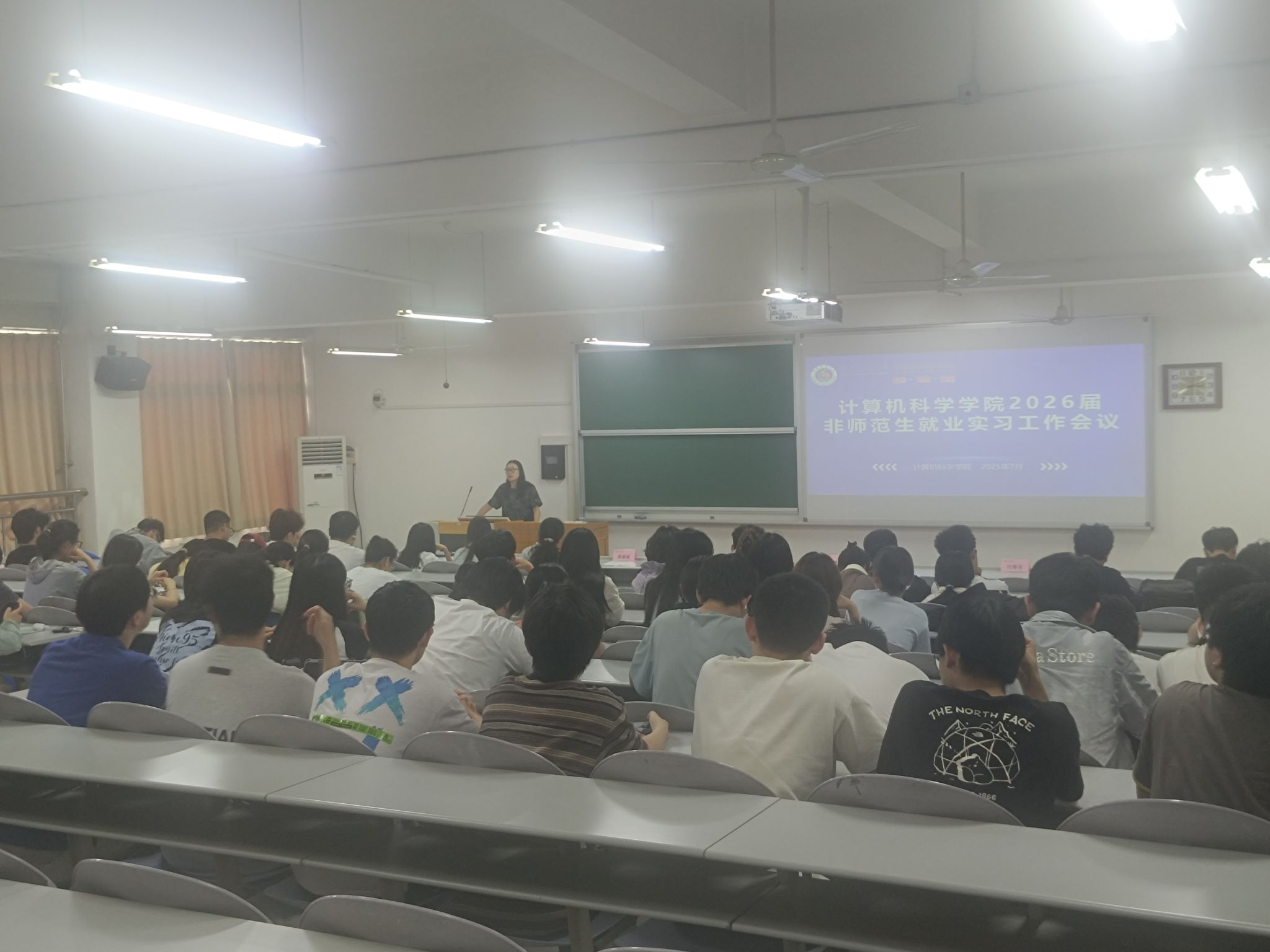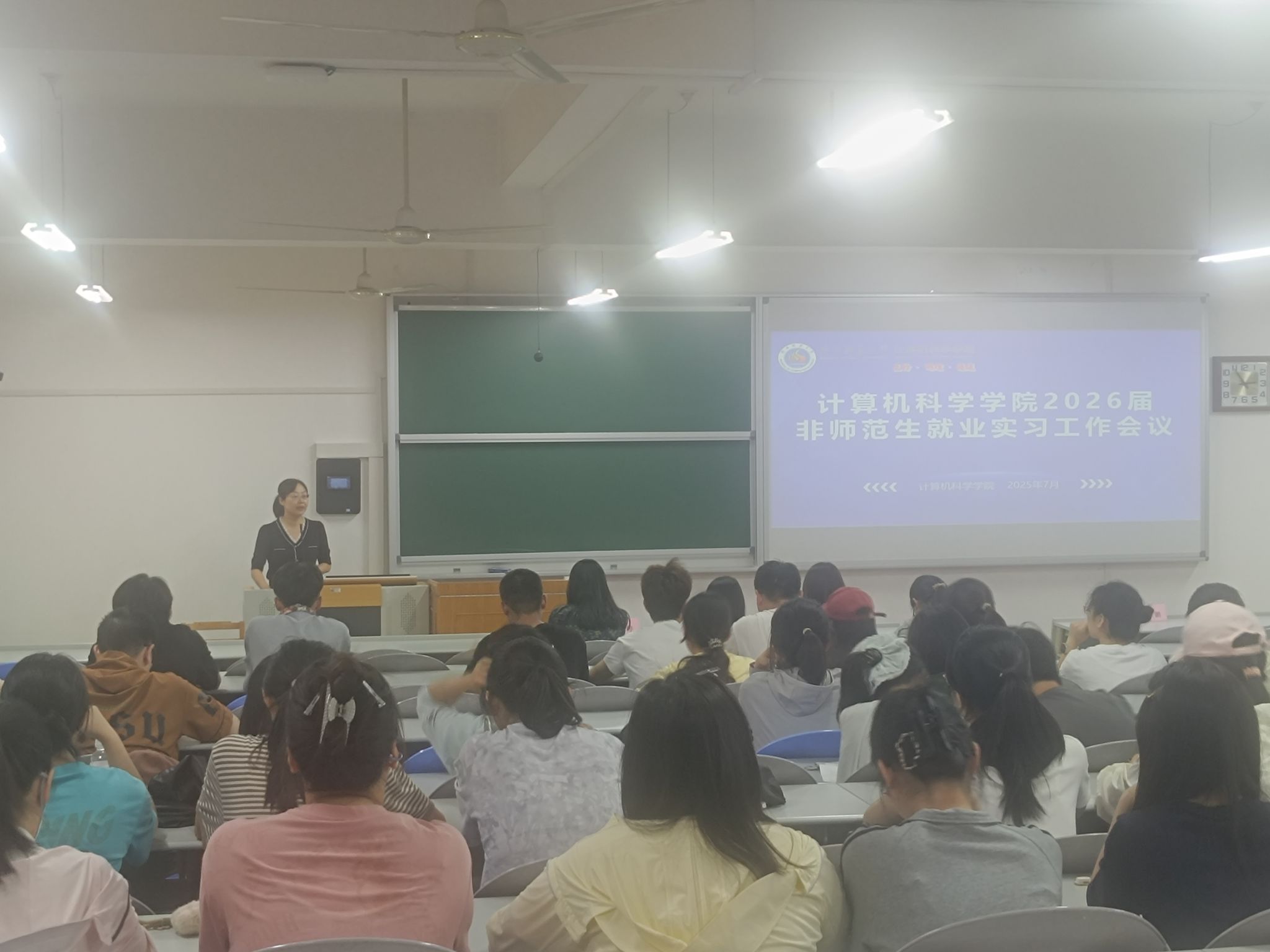 2025年7月3日下午,万象城官网在文津楼3424教室组织召开2026届非师范生就业实习工作会议。学院副院长李鹏、党委副书记郭康凌、教学秘书杨婷、2026届非师范本科生参加,会议由辅导员田海东主持。