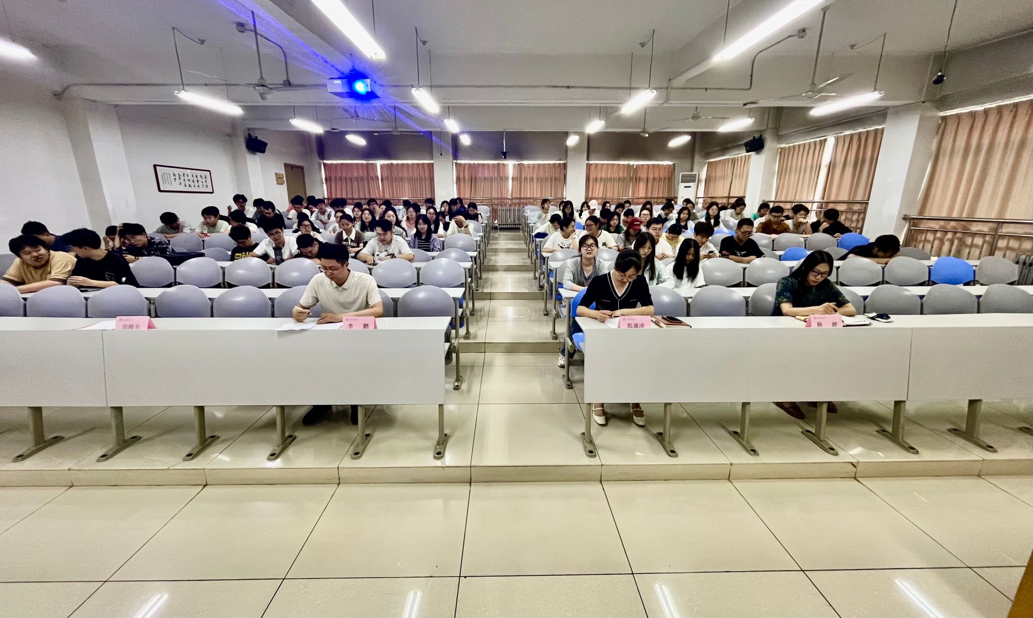 李鹏围绕实习安排要求、实习企业情况、毕业论文撰写三个方面作了安排部署并就行了警示教育;郭康凌介绍了2025届本科生升学就业情况,从树立信心、就业择业、合理规划、调整心态、防范诈骗等方面进行了培训;杨婷从实习材料提交、学分情况通报、毕设撰写要求、科研成果申报等方面进行了指导说明;田海东分别从升学、考公、求职等不同就业方向围绕实习注意事项、合理制定目标、扎实踏实复习、提高安全意识进行了交流。