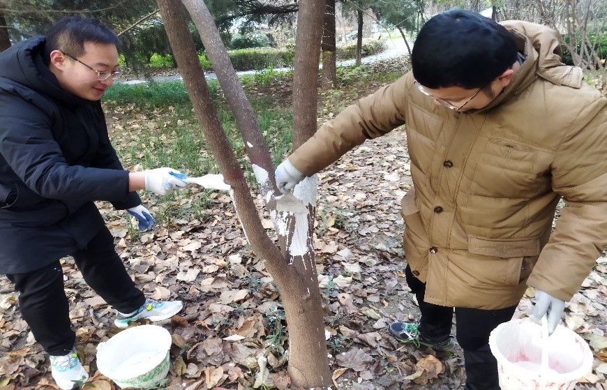 为了丰富校园文化生活,增强学生的劳动观念,培养学生的劳动技能,发挥劳动育人作用,12月6日上午,万象城官网研究生会生活部组织研究生参加给树木刷白漆防虫害劳育活动,本次活动在万象城娱乐awc线路长安校区举行。
