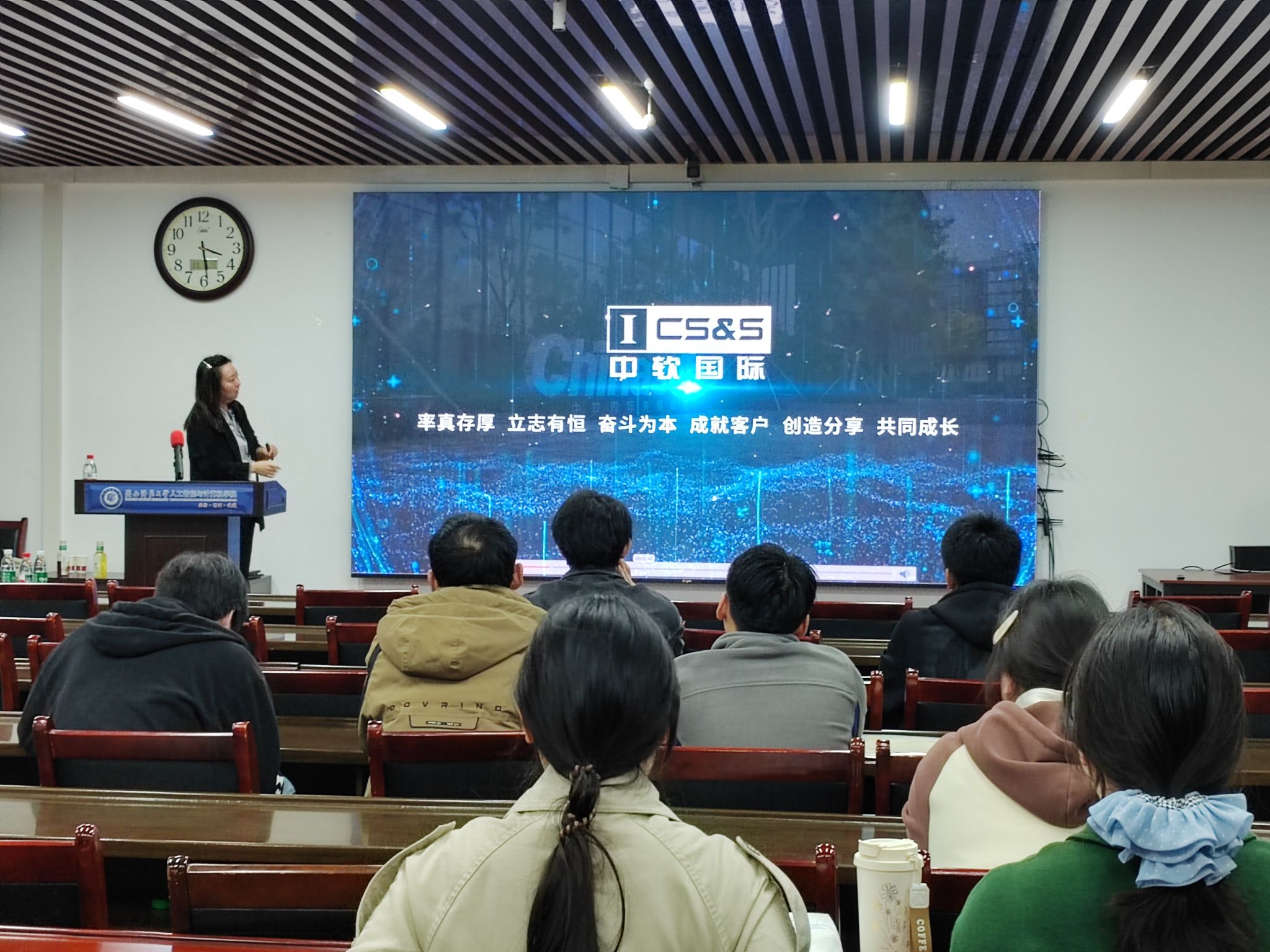 2025年11月6日上午,万象城官网2026届软件工程专业本科毕业生赴中软国际(西安)软件技术有限公司参观学习交流。中软国际教育科技集团技术总监殷建军介绍了企业发展历程、核心业务、项目案例、人才需求等情况,软件工程班主任田丰老师围绕专业情况、人才培养进行了交流,高级项目经理刘荣对学生项目汇报逐一进行了分析点评。
