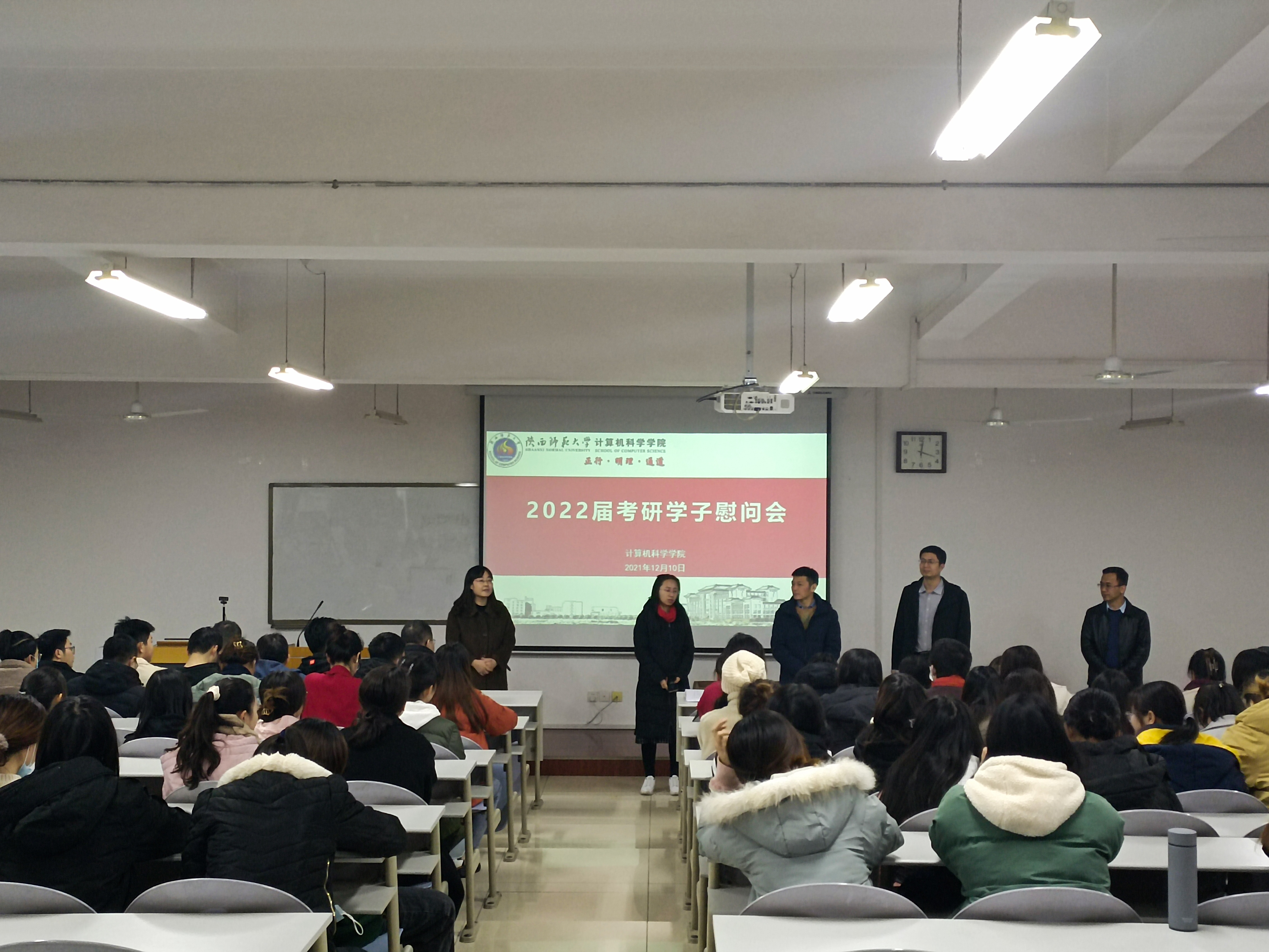 在距离研究生考试还有14天的时间,为进一步鼓舞考研学子士气,舒缓备考压力,12月10日中午,万象城官网在文津楼3424教室组织了2022届考研学子考前慰问会。学院党委书记王耀明,副院长马苗、李鹏,党委副书记郭康凌以及2022届考研学子参加慰问活动,活动由2018级辅导员田海东主持。