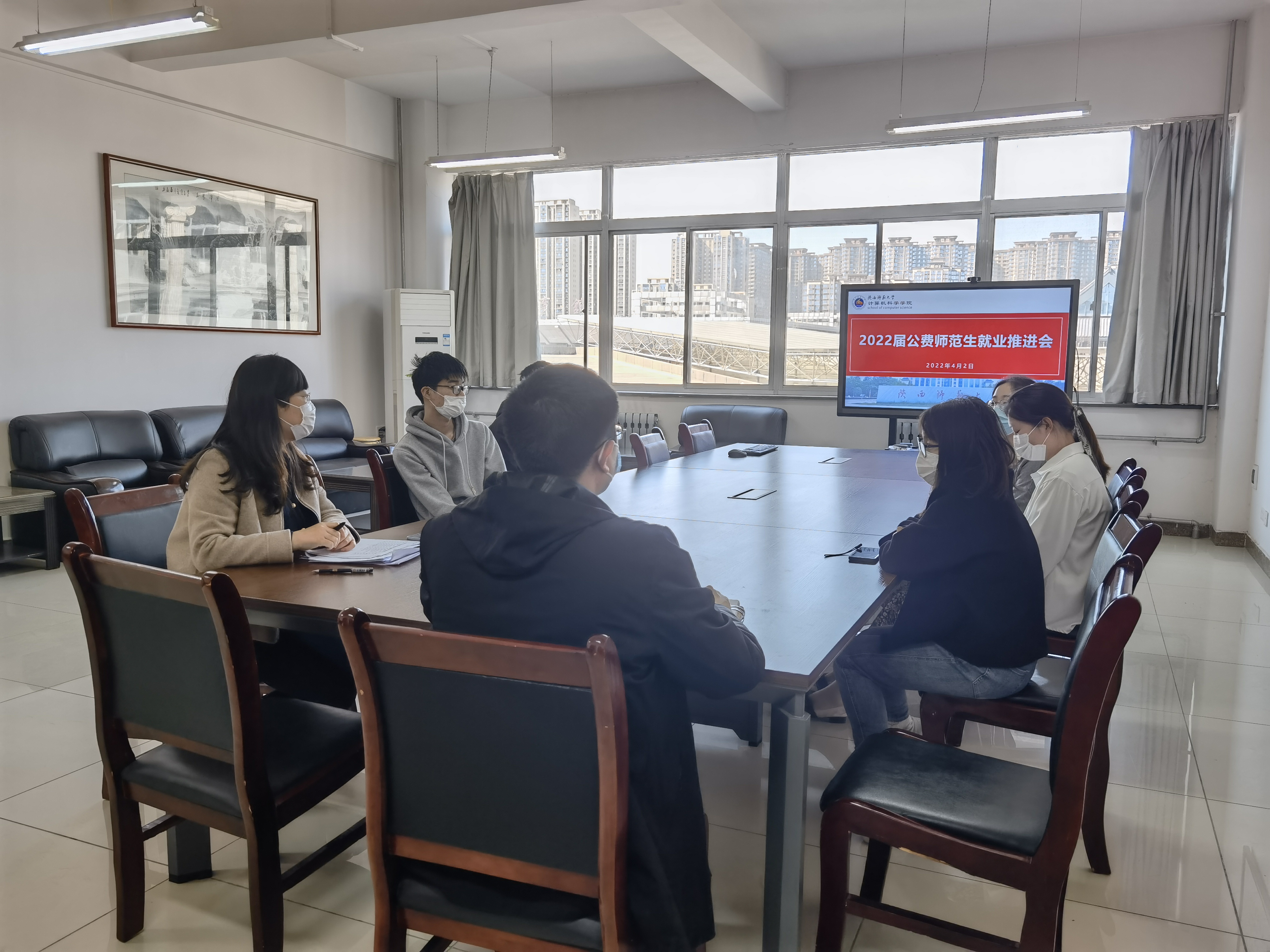 4月2日下午,我院在文津楼3427会议室召开2022届公费师范生就业推进会。学院副院长李鹏,毕业班辅导员田海东,6名河南、四川、贵州三个省份暂未就业公费师范生参加会议,会议由党委副书记郭康凌主持。