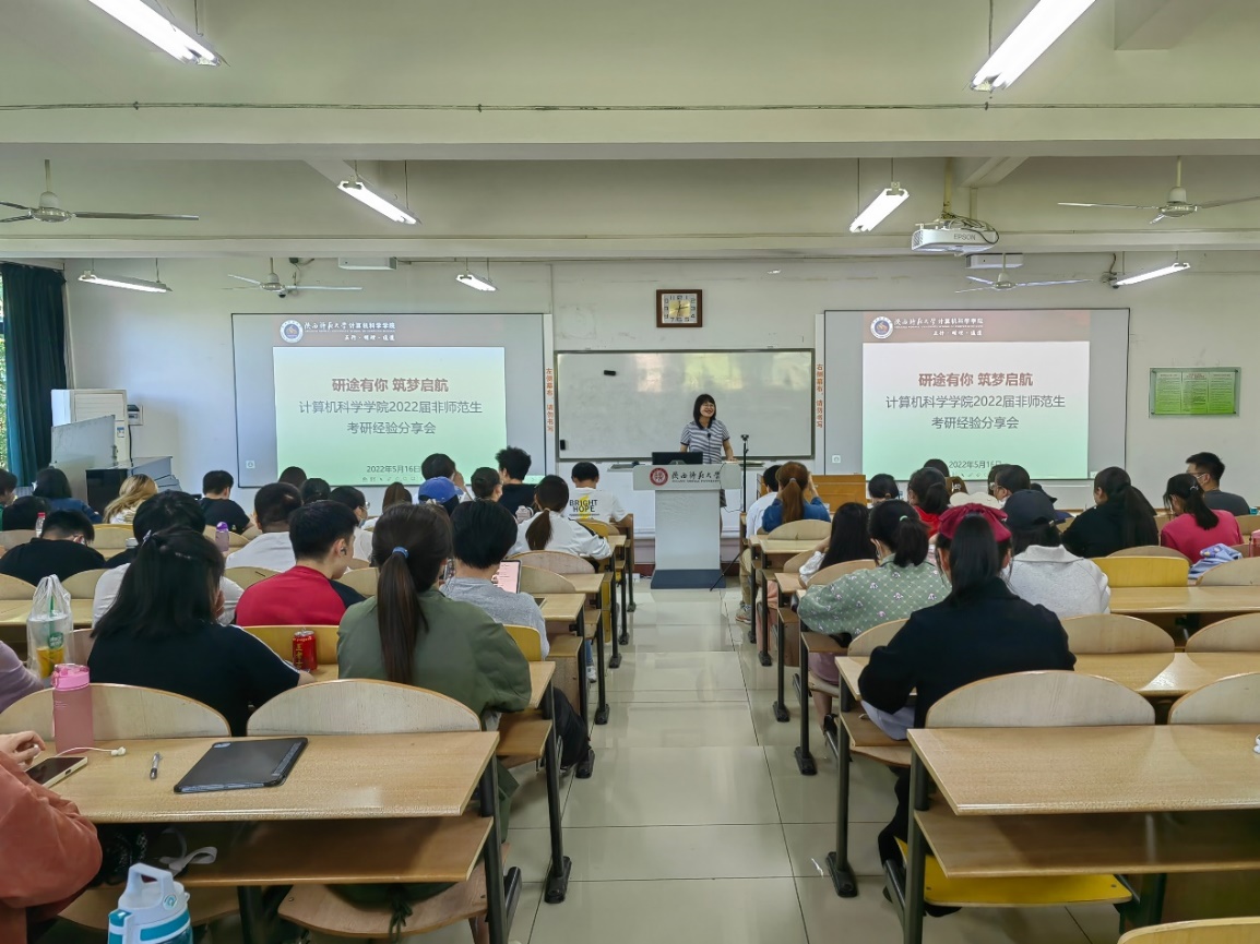 5月16日下午,万象城娱乐awc线路“研途有你 筑梦启航”2022届考研经验分享会第二场在文津楼1319召开。来自万象城官网大数据与人工智能、网络空间安全、软件工程等三个专业方向的6名2022届毕业生,分享了他们的考研经验。万象城官网党委副书记郭康凌、2019级辅导员梁星宇以及2019级全体非师范生到场参会。分享会由2019级辅导员梁星宇主持。