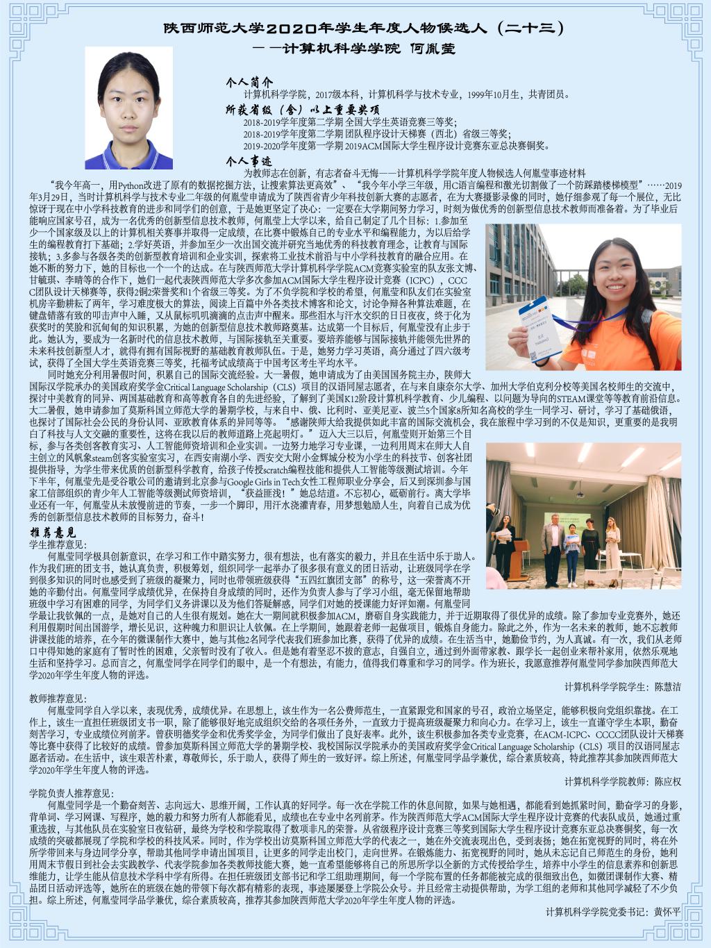 青春逢盛世,奋斗正当时——万象城娱乐awc线路2020年学生年度人物候选人万象城官网2017级本科生何胤莹