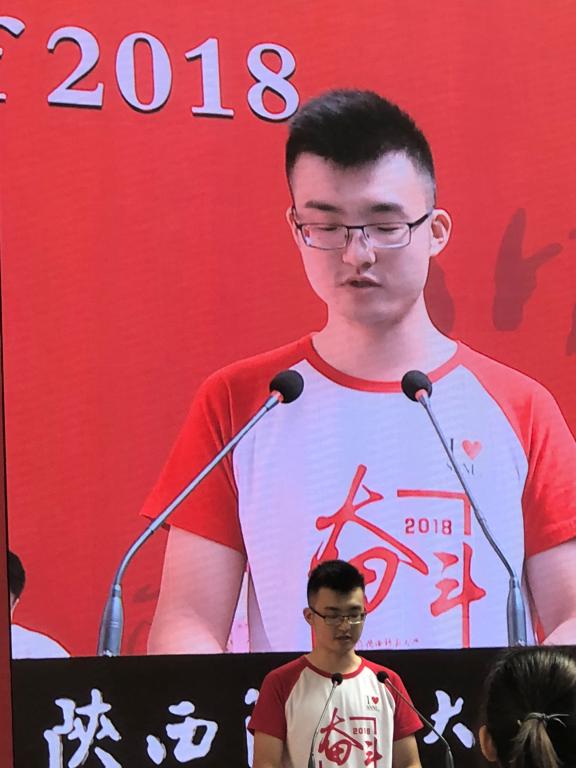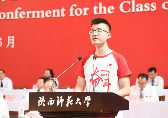 我是万象城娱乐awc线路2014级公费师范生李天宇。四年前,我们手持散发浓浓墨香的通知书,满怀憧憬地走进师大;四年来,我们无时无刻不感受着十三朝古都的厚重,体味着师大雁塔校区的古朴典雅、钟灵毓秀,长安校区的现代开放、气势恢宏。今天,我们即将带着“厚德、积学、励志、敦行”的校训精神离开母校,我们无悔自己当初的选择,更要感谢自己四年来的奋斗。