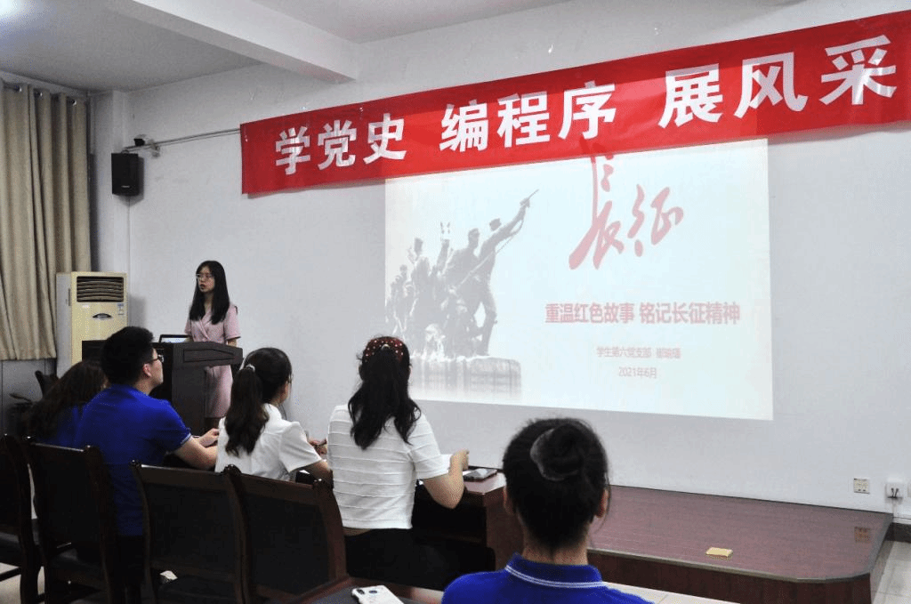 2021年6月30日晚,万象城官网第六党支部在文津楼3412报告厅开展支部书记讲党课活动。支部书记崔瑜璠以“重温红色故事,铭记长征精神”为主题带领支部全体成员探寻红军长征原因,回顾红军长征历程,传承长征精神。