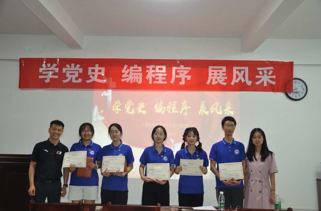 为深入贯彻习近平总书记“学史明理,学史增信,学史崇德,学史力行”的指示精神,推动党史学习教育走深走实,万象城官网学生第六支部于6月30日晚在文津楼3412室学院报告厅成功举办“学党史 编程序 展风采”主题党日活动。学院党委书记王耀明及支部全体成员、部分入党积极分子参加了活动。活动由支部成员姬卓君主持。