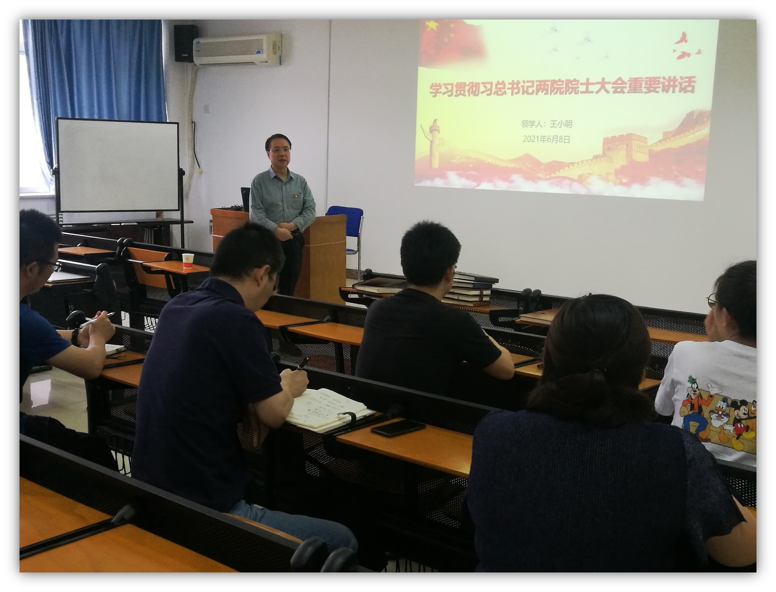 根据学校党委关于开展师生支部党课的工作部署学院党委关于“学百年党史,立教育报国志,做接续奋斗者”党史学习教育实施方案的安排2021年6月16日下午,王小明院长为普适计算党支部讲党课